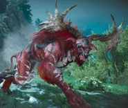 - ↑ 6,0 6,1 В русской локализации игры нет указаний на видовую принадлежность зверюги, однако в английской Регис, рассказывая о происхождении легенды о смерти чудовища, произносит словосочетание «… the fiend's corpse…», что переводится как «труп беса».