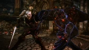 Также против неё действенен ЗнакИгни на ослабление брони, другие же знаки здесь почти бесполезны. Тактика проста: уклонение от прыжков и мощных атак монстра под защитой Квена, лучше всего использовать силовые атаки.
