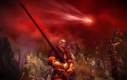Геральт узнаёт о Зельткирке от участников битвы под Вергеном. Те рассказывают ведьмаку, что тот был благородным воином и непревзойдённым полководцем, который руководил войскамиАэдирна в той битве. Несмотря на численное превосходство противника, каэдвенцы успешно громили аэдирнцев, прорывая их защиту на разных участках, однако в каждом месте, где оборона проседала, тут же появлялся Зельткирк, Первый меч Аэдирна, и изменял ход битвы.