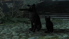 К ведьмаку подходит чёрный кот и завязывает разговор о философах и понятии жизни. К коту присоединяется и чёрный пес, что ранее был на входе. В другой ситуации Геральт был бы потрясен, но после увиденного ему уже нечему удивляться. Звери сообщают, что сразу что-либо сказать они не могут, поскольку обязаны соблюдать дистанцию. Питомцы знают, чьё это имение, так как их можно считать друзьями семьи. Это радует гостя, ведь ему нужна госпожа Ирис фон Эверек, и он просит доложить ей о визите ― он пришел за фиолетовой розой, которую Ольгерд подарил Ирис перед отъездом. Кот отвечает, что Ирис внутри ― можно взять ключи от задней двери дома у погибшего монстра и войти.