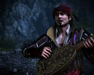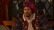 После победы над Яковом Геральт снова встречает поэта уже в Обители Ордена. Бард обсуждает с другом дальнейшие планы, проделанный путь и двимеритовый медальон Альвина, найденный на теле Магистра.