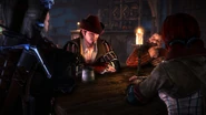 Лютик рад встретить старого друга и не менее рад тому, что он остался жив благодаря ведьмаку. Геральт вместе с Лютиком и остальными друзьями хорошенько отмечают спасение и, конечно, обсуждают все недавние события. Выясняется, что бард теперь шпионит для Темерии по просьбе Вернона Роше.