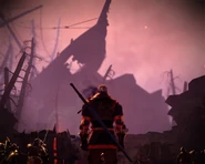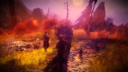 Место, в котором несколько лет назад разыгралась кровавая битва, закончившаяся магическим катаклизмом местного значения, в солнечный день не выделялось ничем особенным. Скалистые ущелья выходили на равнину, изрытую глубокими бороздами и воронками от снарядов катапульт и магических взрывов, устроенных Сабриной Глевиссиг. Высокая рыжая трава уже начинала затягивать ржавое железо панцирей и пожелтевшие кости павших. Но когда вступило в силу проклятие, часть поля охватила призрачная мгла, внутри которой гасло, как в кошмарном сне, солнце, а бесплотные души без конца повторяли битву, в которой им пришлось пасть. Когда ведьмаку удалось снять проклятие, мгла рассеялась, а призраки павших ушли в небытие.