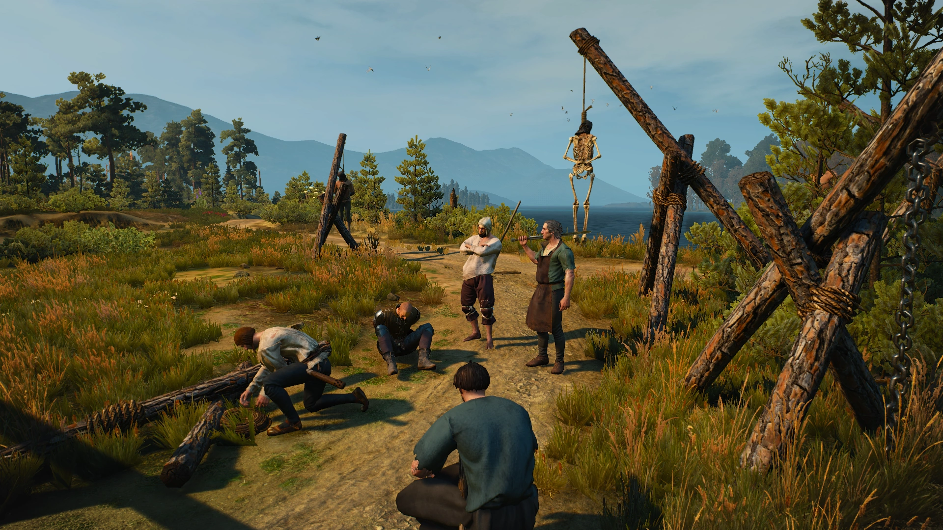 К западу от деревни Большие Сучья на аллее висельников Геральт обнаруживает группу местных жителей, которые собираются казнить схваченного нильфгаардского солдата Дильвина, пытавшегося дезертировать на родину. Ведьмак может как позволить крестьянам совершить самосуд, так и вмешаться.