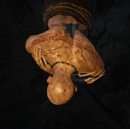 - В некоторых местах в Туссенте есть алтари со свечами и камнем, на котором изображён тот же символ, что Скрытый носит на шее: металлический обруч, на вершине которого располагаются два рогатых существа, похожие на мифологических химер. Этот знак, очевидно, связан с культурой вампиров, а возможно, и является личным «гербом» Скрытого, и подобные «алтари» символизируют его власть над данной территорией.