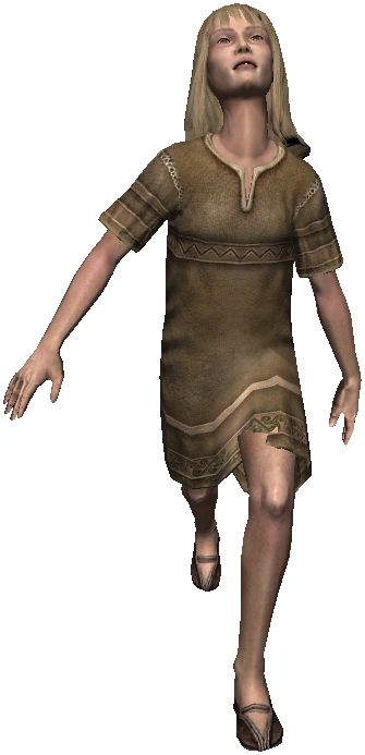 Геральт встречает девочку сразу же, как только прибывает в Темноводье, приземлившись после телепортации из Вызимы на Берегу Озера. Девочка в этот момент вместе с остальными крестьянами смотрела на проекцию подводного города и становится первым персонажем на локации, которого встречает Геральт. Поговорив с ней, далее ведьмак может найти её на берегу практически в любое время, как правило, на пути к статуи Владычицы. Когда «злые рыболюди» приходят, она прячется в хижине Короля-Рыбака.