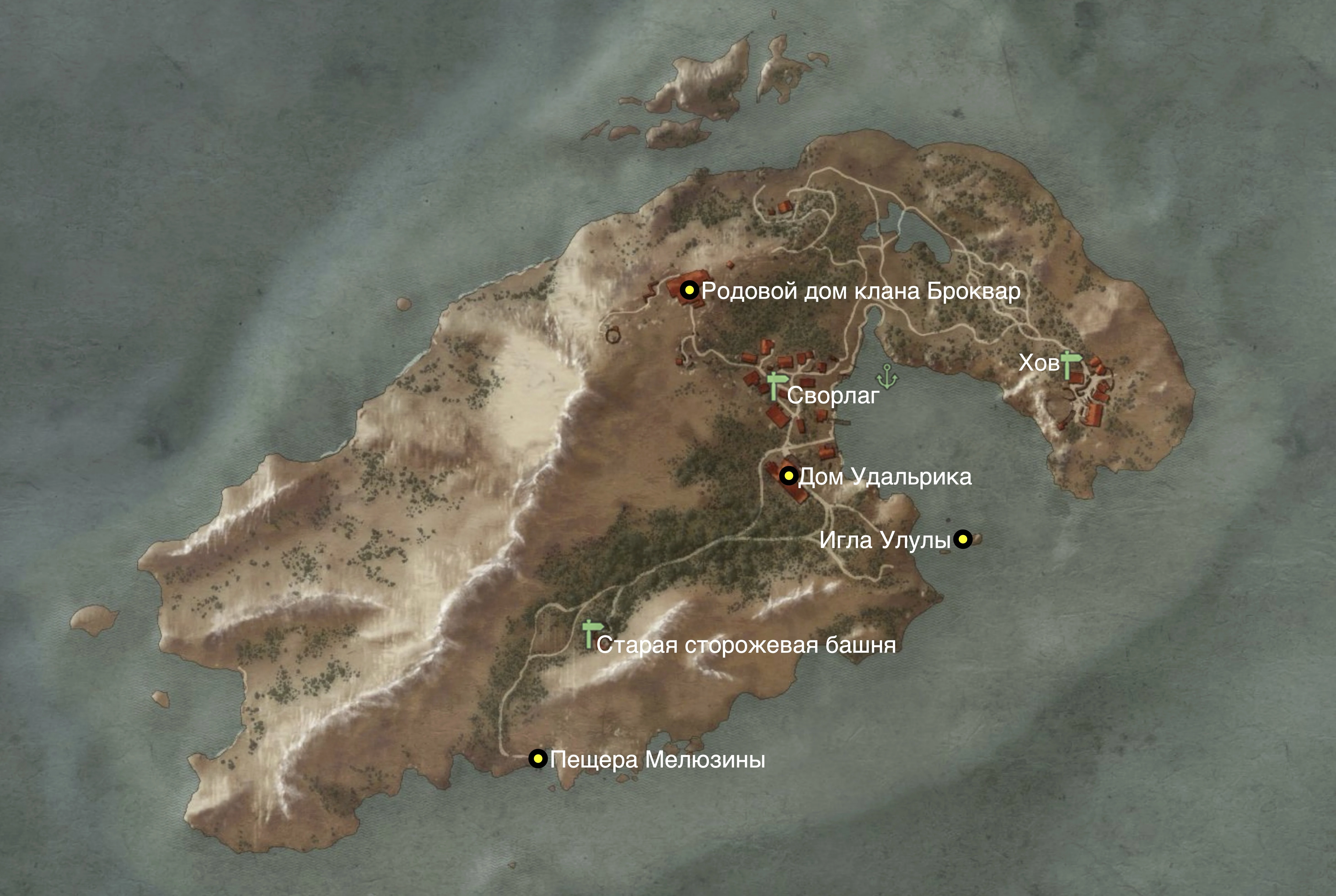 Также в ходе странствий по Скеллиге Геральт может найти книгу «Одинокий мир: путеводитель по Спикероогу», рассказывающую об острове подробнее и открывающую гавань в Сворлаге.