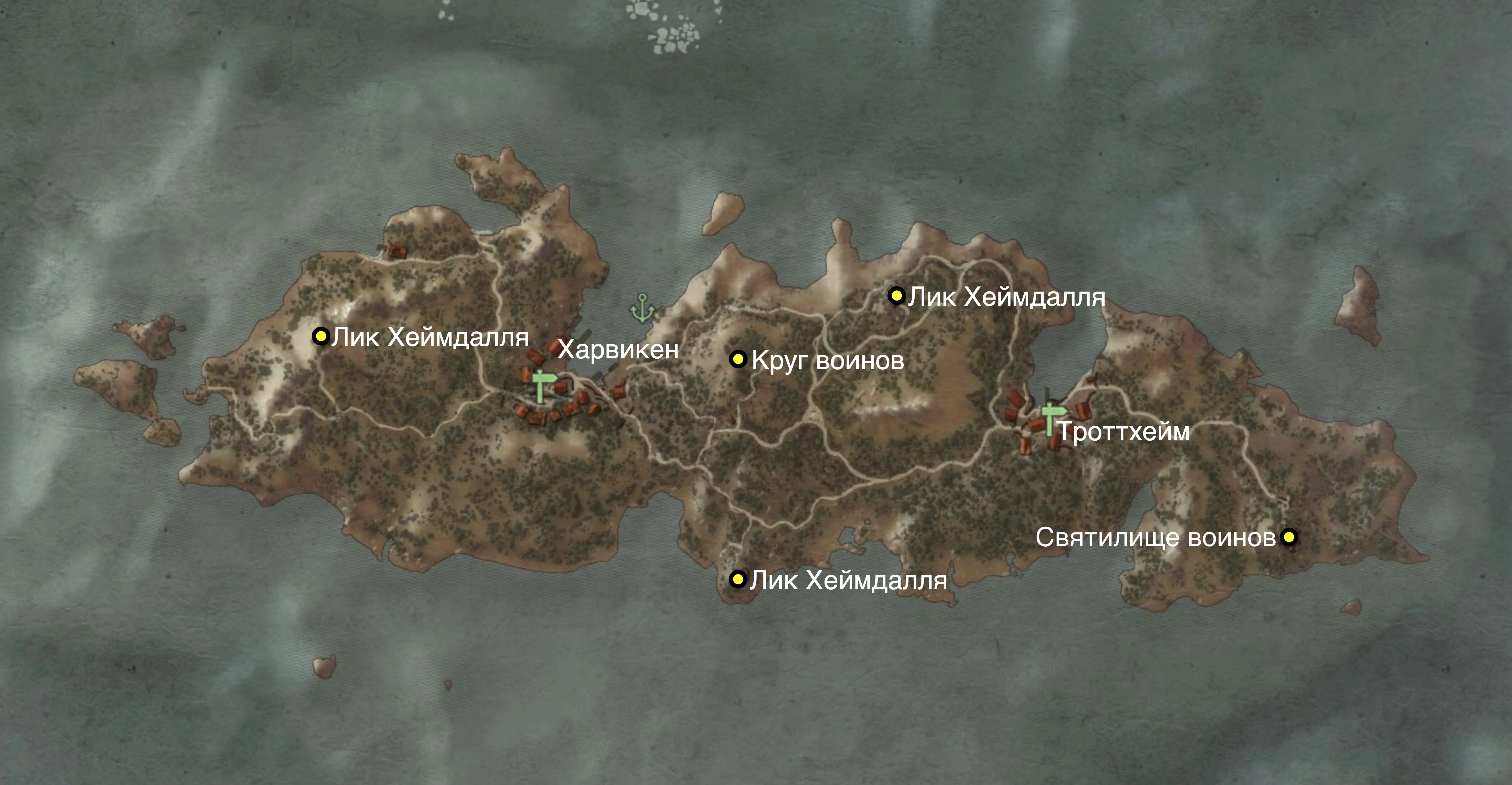 Местная бухта у́же харвикенской и менее приспособлена для стоянки драккаров, зато поселение обнесено невысокой каменной стеной с вкопанными в землю деревянными кольями.