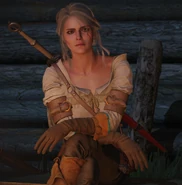 Юная воспитанница Геральта, которую судьба много раз разлучала с ним и сводила вновь. Ещё в раннем детстве Цири попала к ведьмакам школы Волка и за годы суровых тренировок научилась прекрасно обращаться с мечом и сражаться с ловкостью и быстротой львицы. Цири — последняя, в ком течёт Старшая Кровь, а значит, единственная обладательница сверхчеловеческих способностей, позволяющих повелевать пространством и временем. Вот почему за ней постоянно охотятся — как в этом мире, так и за его пределами[11].
