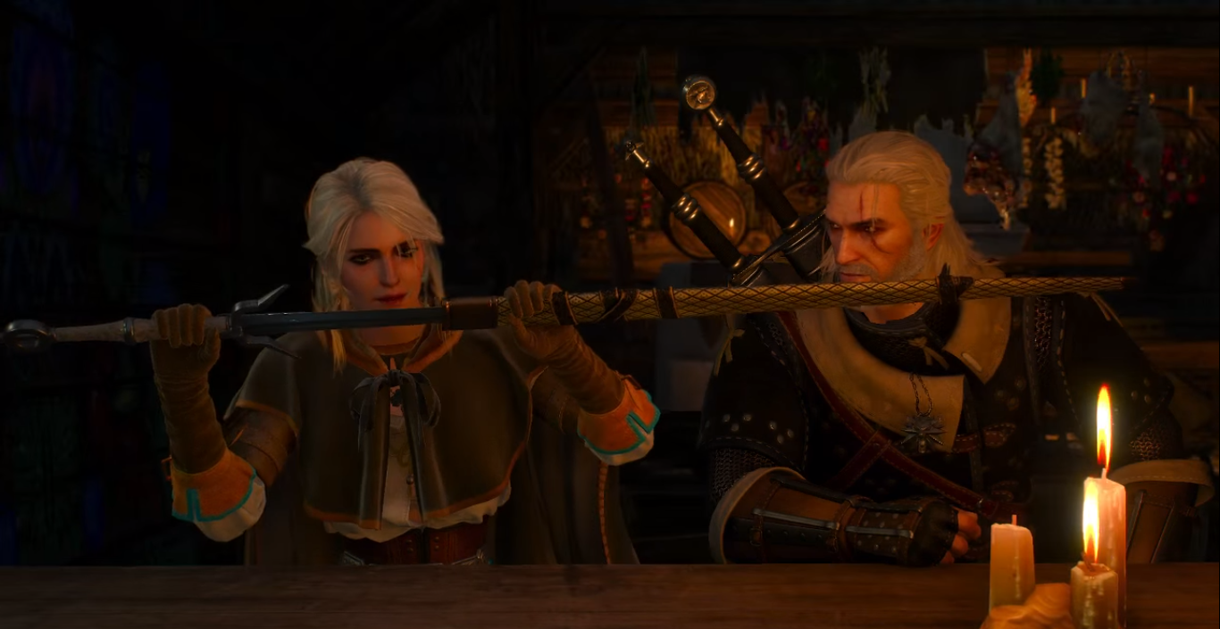 Чуть позже ведьмак и ведьмачка сидят у камина ― Цири чистит меч, а Геральт радуется, что не все уроки Весемира пропали зря. Цири замечает новый большой шрам на лице Геральта и спрашивает, какая тварь стала его причиной новой отметины над его левым глазом. Геральт сообщает, что этот «подарок» достался ему от куролиска из Спаллы. Ведьмак просит Цири рассказать ему всё с самого начала ― о том, как она снова вернулась домой. Цири рассказывает всю историю своих приключений от Ард Скеллиге и до Острова Туманов. Геральт также спрашивает её про сны, так как у него в последнее время были только кошмары, и Цири признаётся, что её тоже преследуют кошмары, хотя были и хорошие моменты.