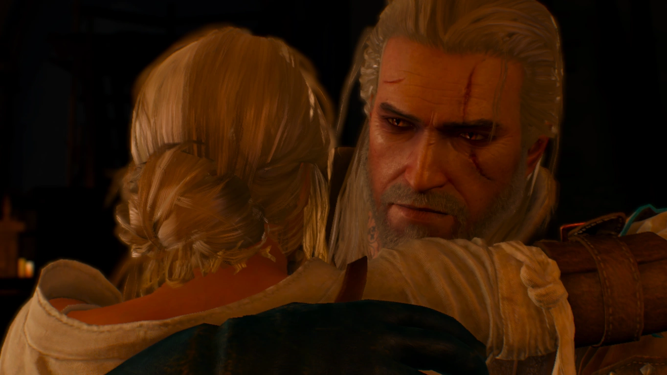После многих приключений и неудач Геральт наконец нашёл Цири на Острове Туманов. Когда он переступил порог комнаты, в которой она спала, защитное заклинание, наложенное на неё Аваллак'хом, лопнуло под тяжестью их объединённых судеб. Геральт воссоединился со своей приёмной дочерью после многих лет разлуки и поисков. Никакие слова не могут описать ту радость, которую он почувствовал в тот момент.