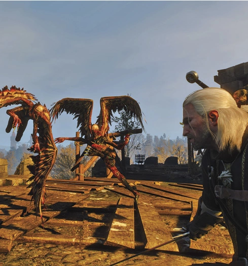 - Трудно себе представить, но населяющие острова Скеллиге эринии ещё более отвратительны, чем их родичи гарпии. И при том — более опасны. Хотя больше всего они любят изрядно сгнившую падаль, но не побрезгуют и свежим мясом, в том числе — человеческим.