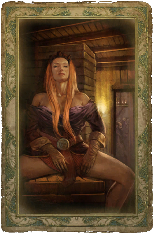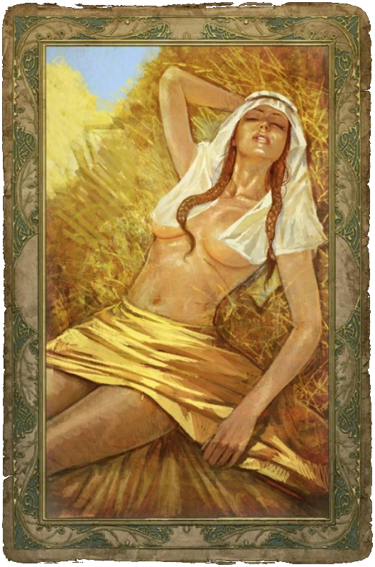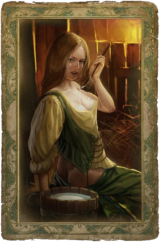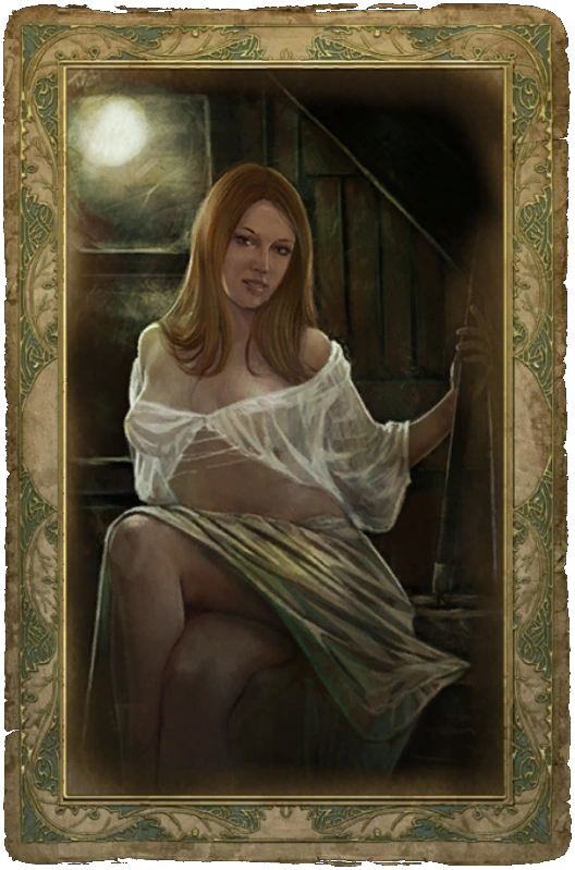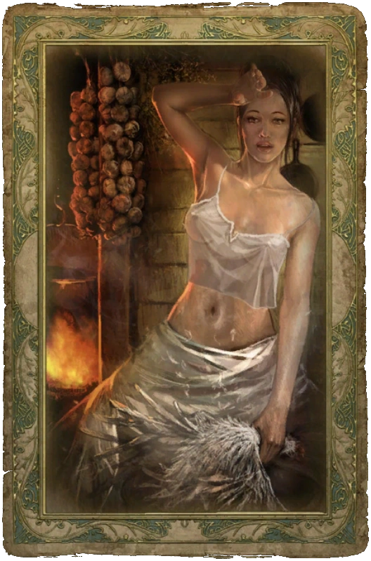 Чтобы открыть карточку с крестьянкой, нужно подарить ей тюльпаны, а их можно взять с трупа, лежащего рядом с одним из мест Силы по дороге к пещере, или обменять у жительницы городка, которая презентует букет тюльпанов в обмен на другие цветы.