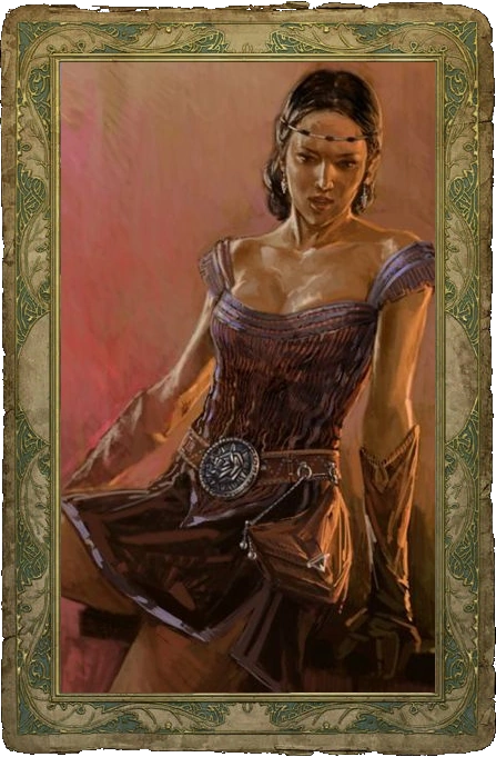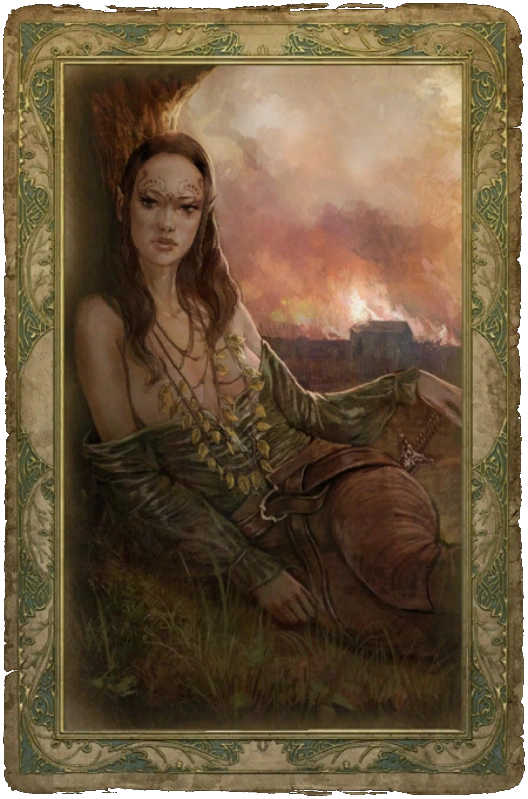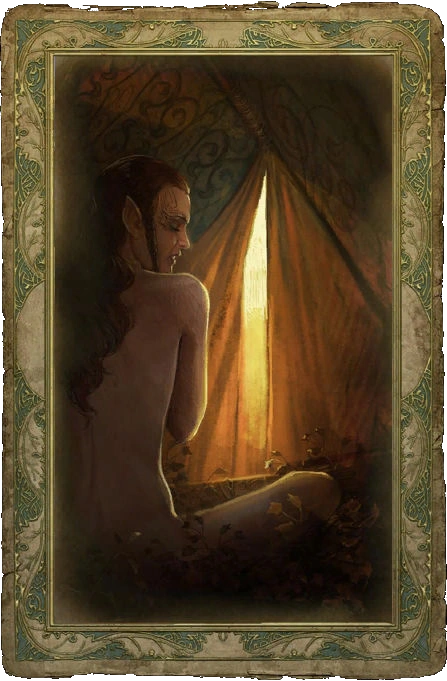 Чтобы встретить полуэльфку, нужно зайти в дом напротив склада (рядом с таверной «Под кудлатым мишкой») и согласиться выполнить задание для разбойника, который там сидит. Придя по указанному адресу, придется разобраться с нападающими и спасти пленницу. Далее следует поговорить с ней у нее дома, пытаясь вспомнить Старшую речь, а именно дать ответы: «Ты — Feainnwedd. Дитя Солнца», «Ты родом…», «Ты права…».