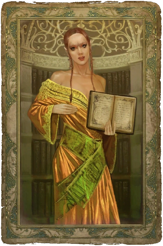 Поговорить со сплетницей можно в Храмовом квартале и спросить ее о слухе о появлении в городе ведьмака, и продолжать пока не начнется разговор о подарках. Затем нужно подарить на выбор одежду или драгоценный камень. Для этого подойдут перчатки или алмаз.