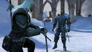 - Яков вооружён мечом Ard'aenye, который является самым мощным стальным оружием в игре и который в нынешних версиях игры получить нельзя.